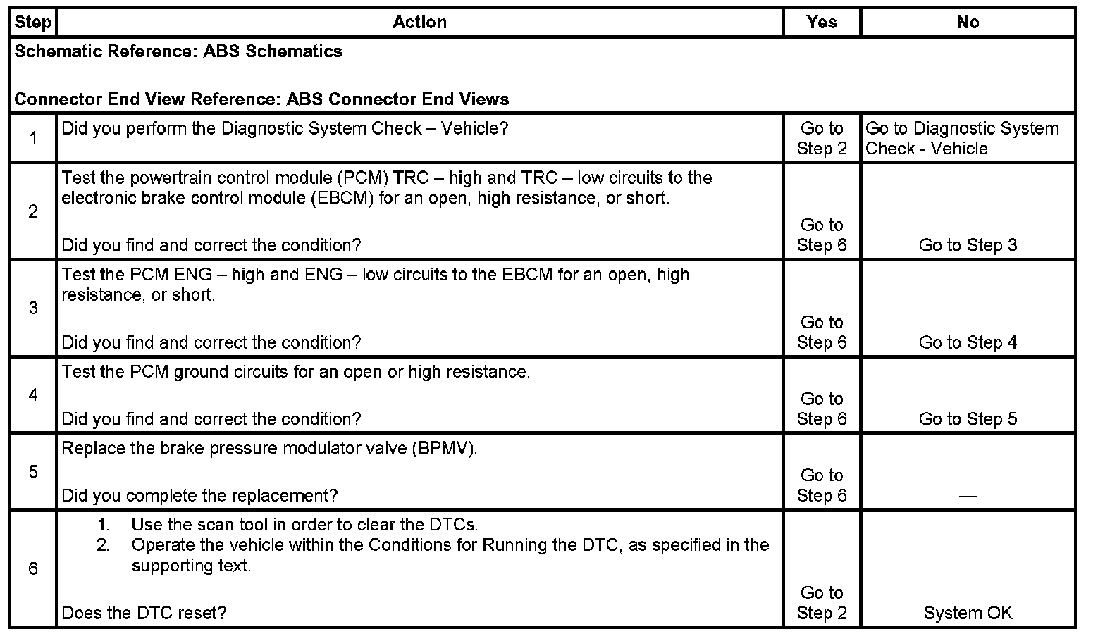 2. This step tests the PCM TRC - high and TRC - low circuits to the EBCM for an open, high resistance, or short.
