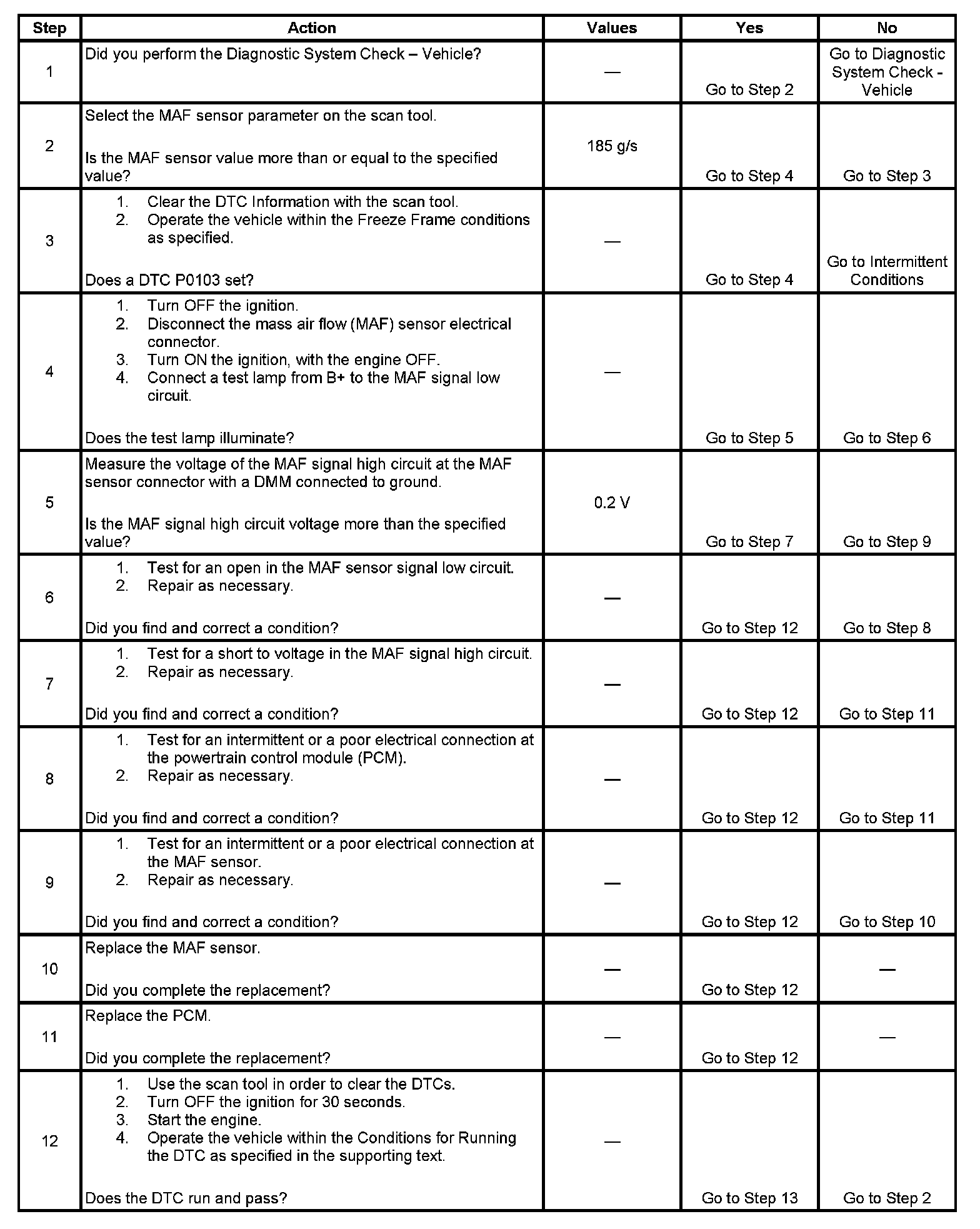 DTC P0103 Mass Air Flow (MAF) Sensor Circuit High Voltage