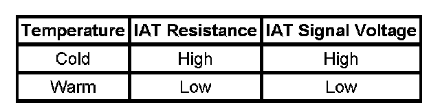 Use the Temperature vs Resistance table in order to evaluate the possibility of a shifted IAT sensor. A shifted sensor could result in a DTC P0112. Refer to Temperature vs Resistance.