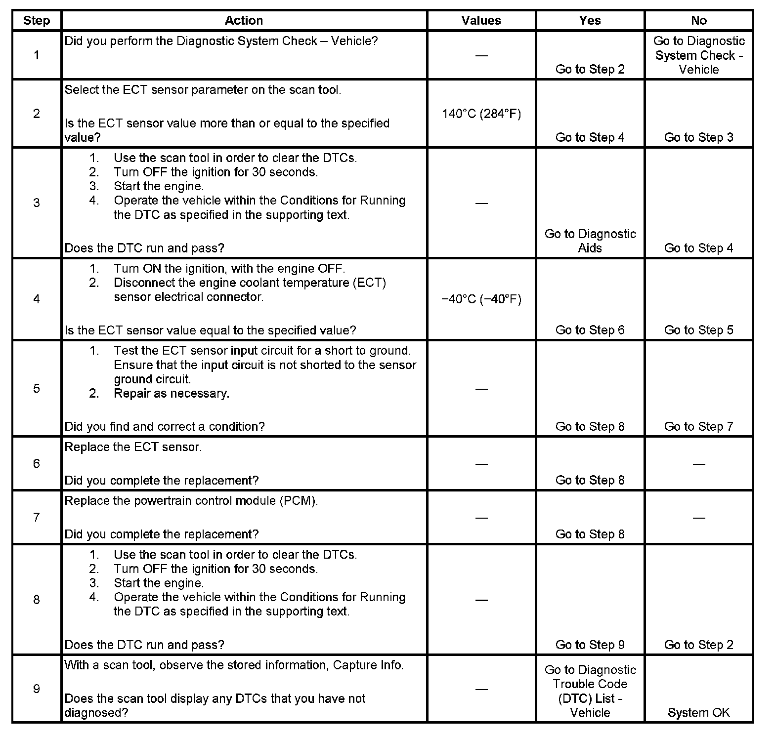 - Use the Temperature vs Resistance table in order to evaluate the possibility of a shifted ECT sensor. A shifted sensor could result in a DTC P0117. Refer to Temperature vs Resistance.