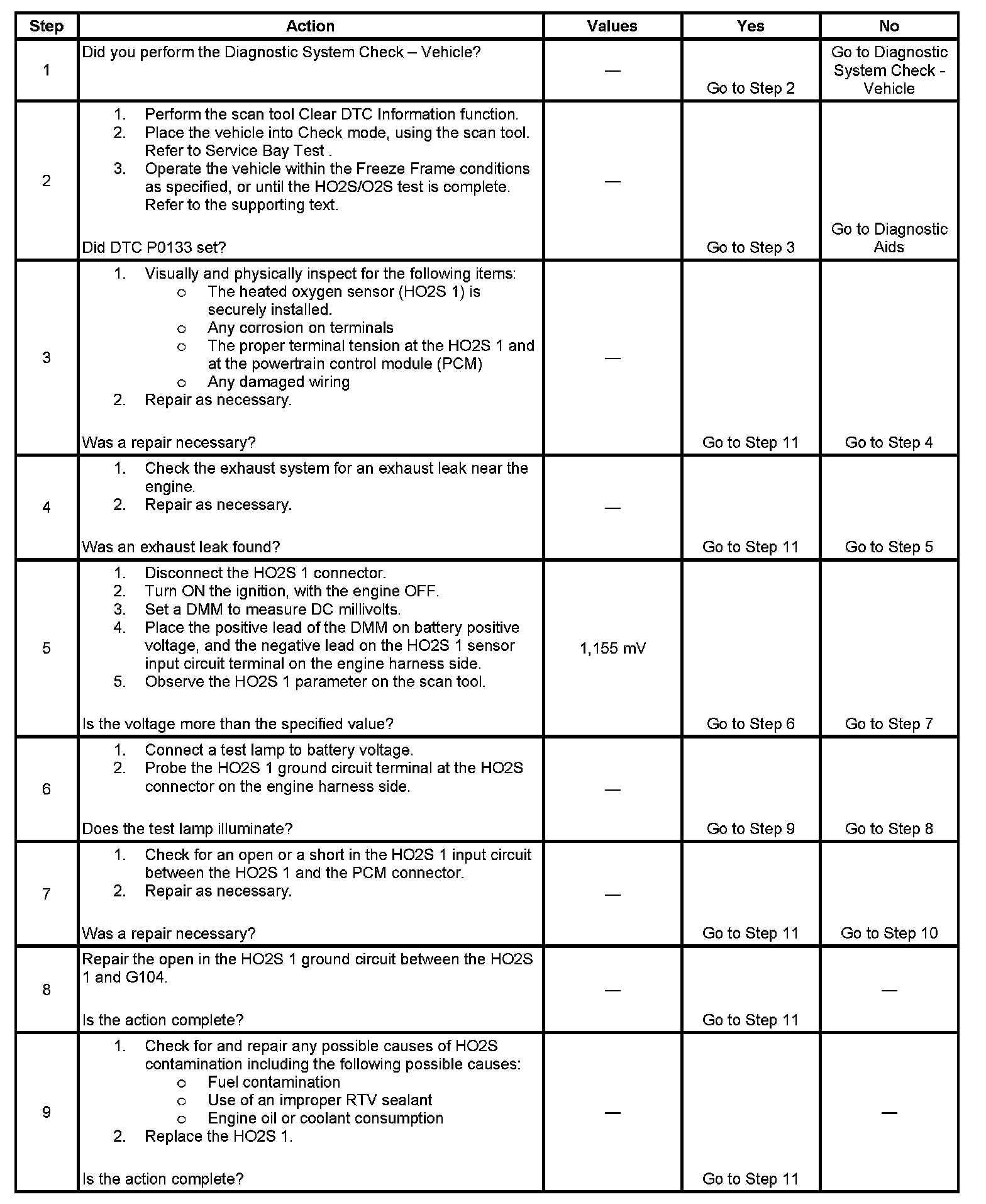 If a DTC P0133 is intermittent, driving the vehicle under the conditions outlined in the Inspection/Maintenance (I/M) section can verify whether the fault is present. Refer to Inspection/Maintenance (I/M) Heated Oxygen Sensor/Oxygen Sensor (HO2S/O2S) System Set Procedure. Heated Oxygen Sensor/Oxygen Sensor (HO2S/O2S) System Set Procedure