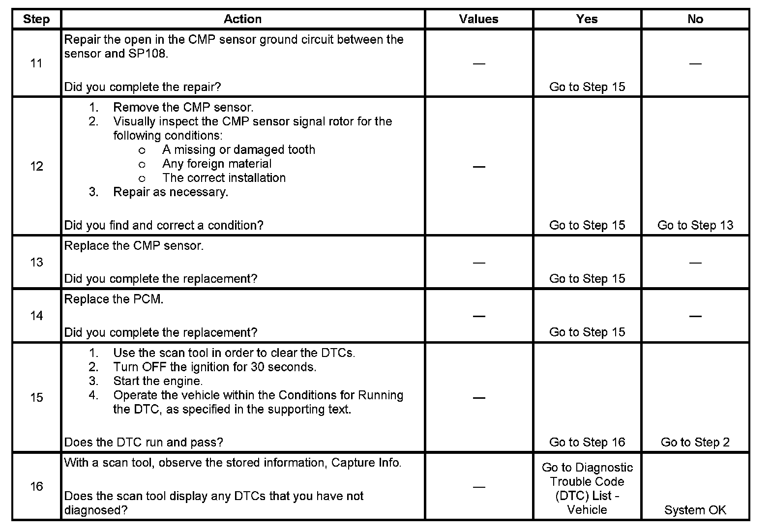 - An intermittent malfunction may be caused by a fault in the CMP sensor electrical circuit. Inspect the wiring harness and the components for an intermittent condition.