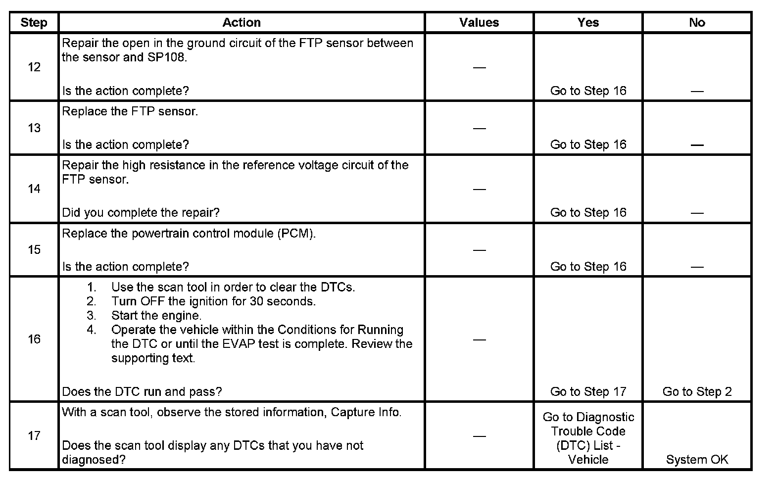 9. This step checks for an open or short in the FTP sensor input circuit.
