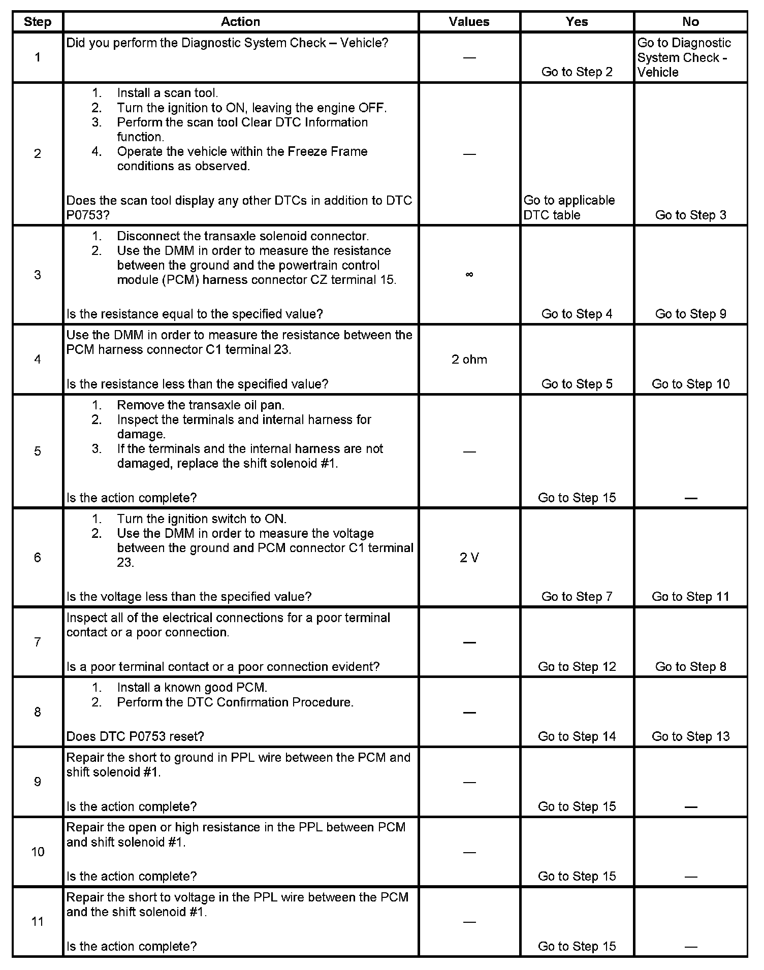 DTC P0753 Shift Solenoid (SS) 1 Control Circuit