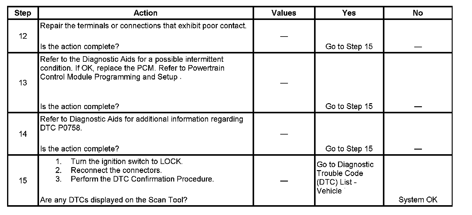 12. Use a scan tool to inspect DTC P0758.