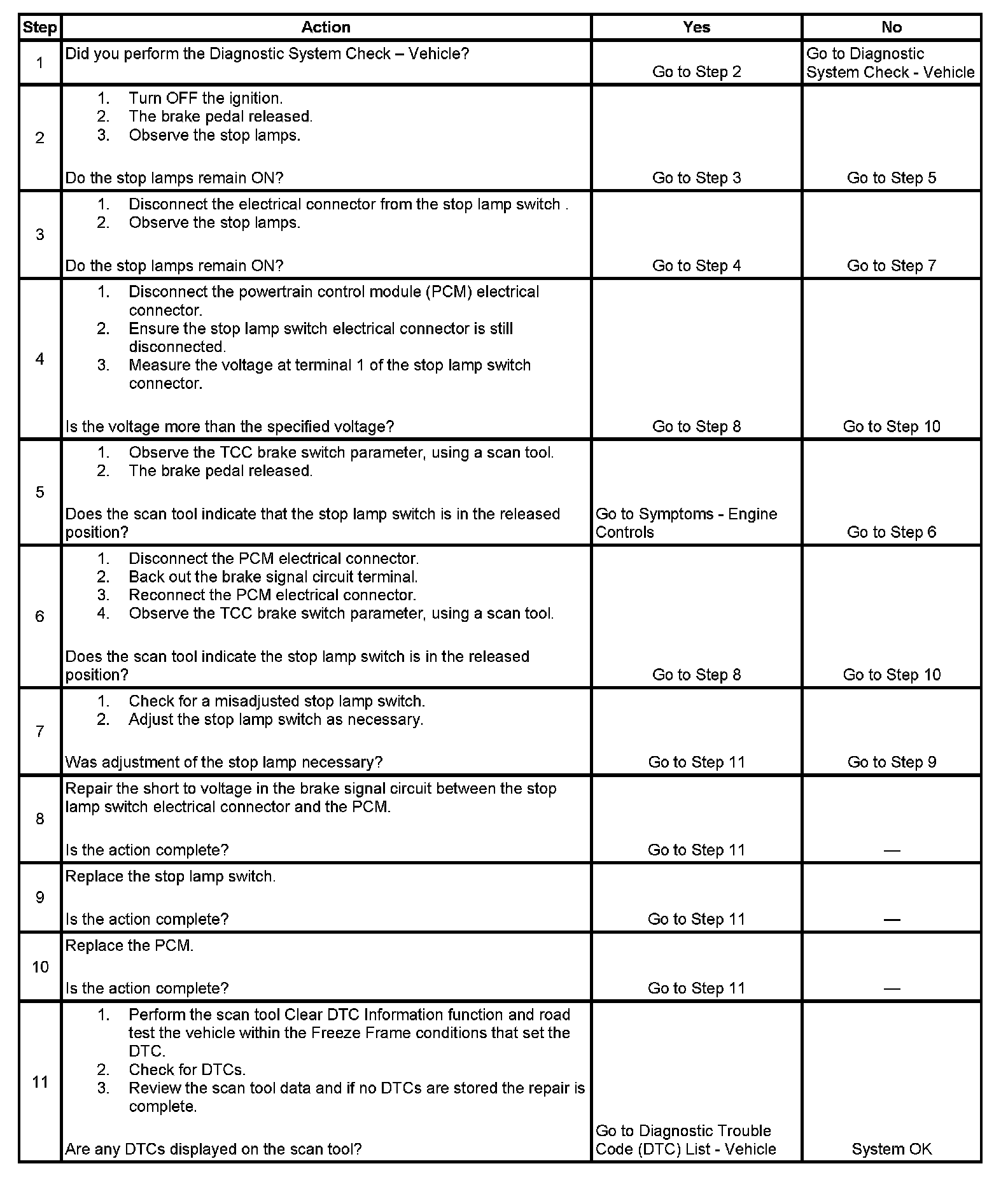 6. This step will determine whether there is a short to voltage within the PCM, or a short to voltage in the circuit between the PCM and the stop lamp switch.