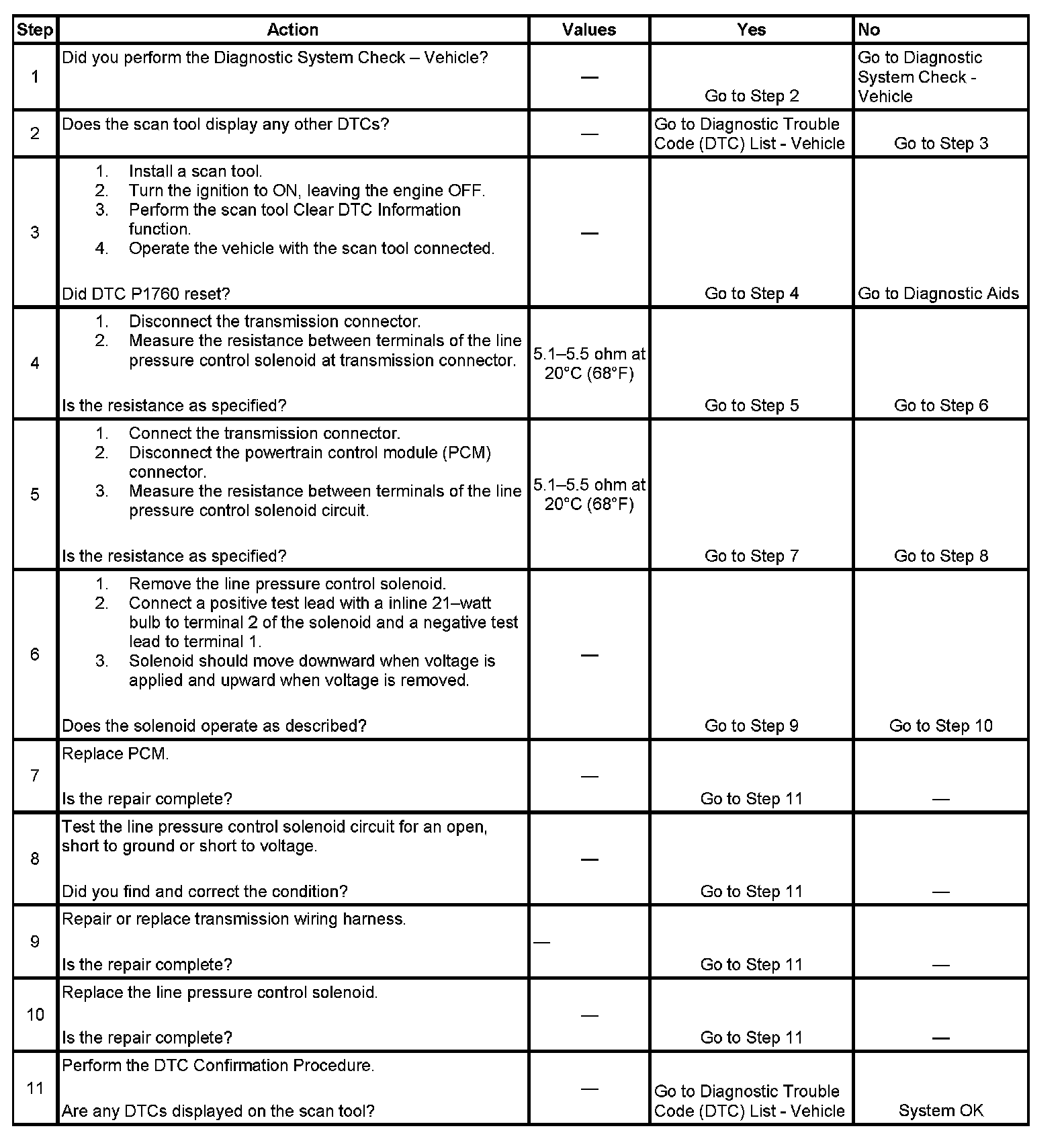 DTC P1760 Line Pressure Control (PC) Solenoid Control Circuit
