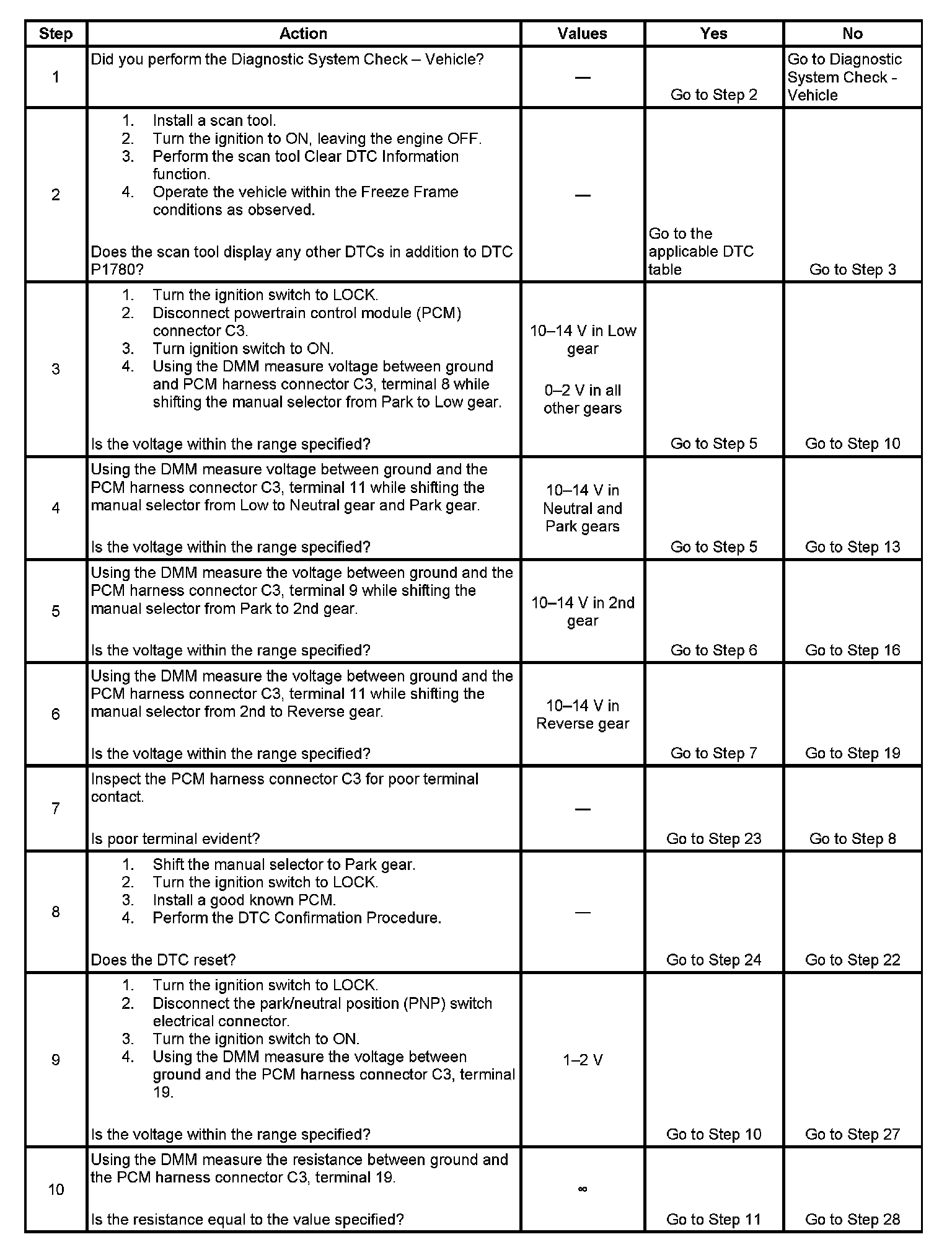 12. This step checks for a short to voltage in the N and P positions.