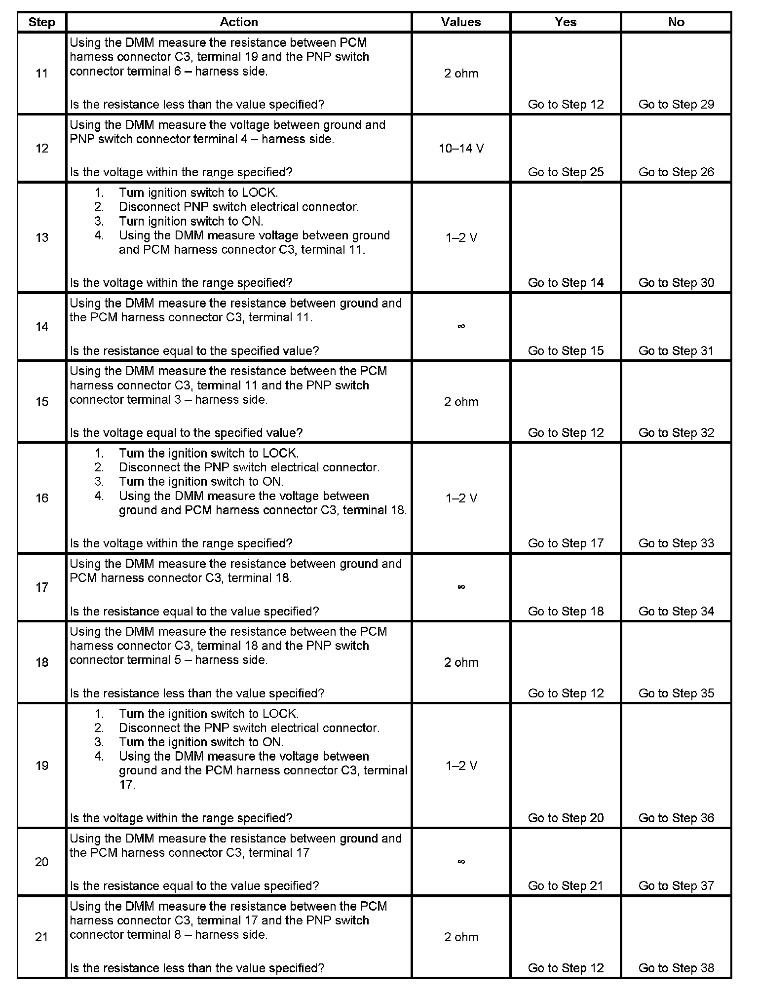 7. This step checks for a faulty PCM.