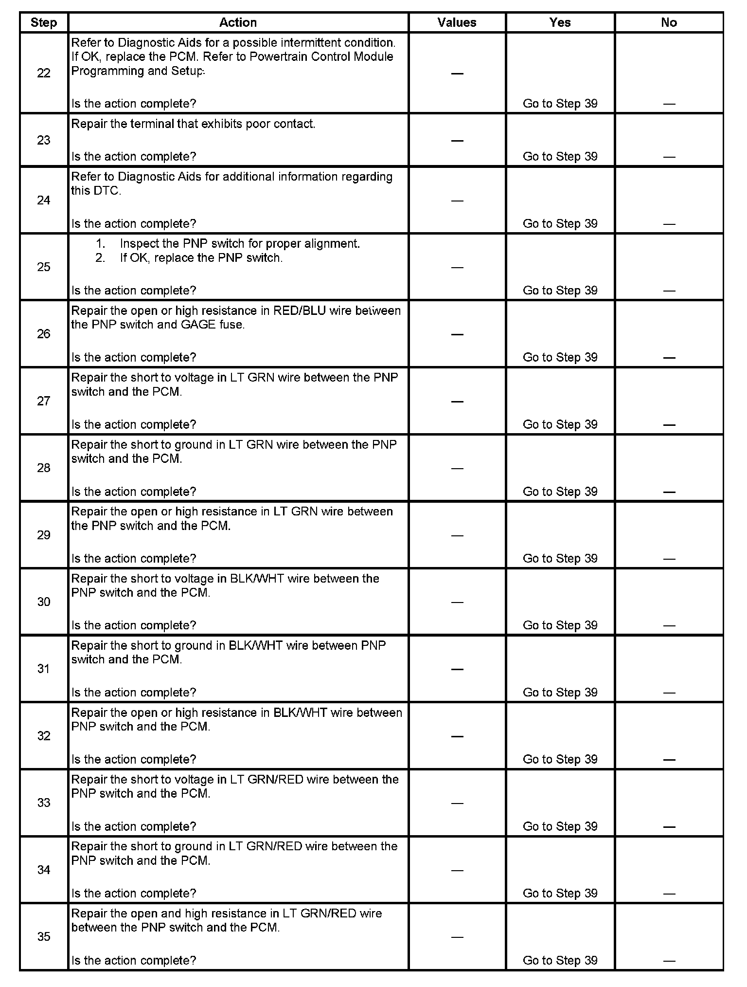 13. This step checks for a short to ground in N and P positions.