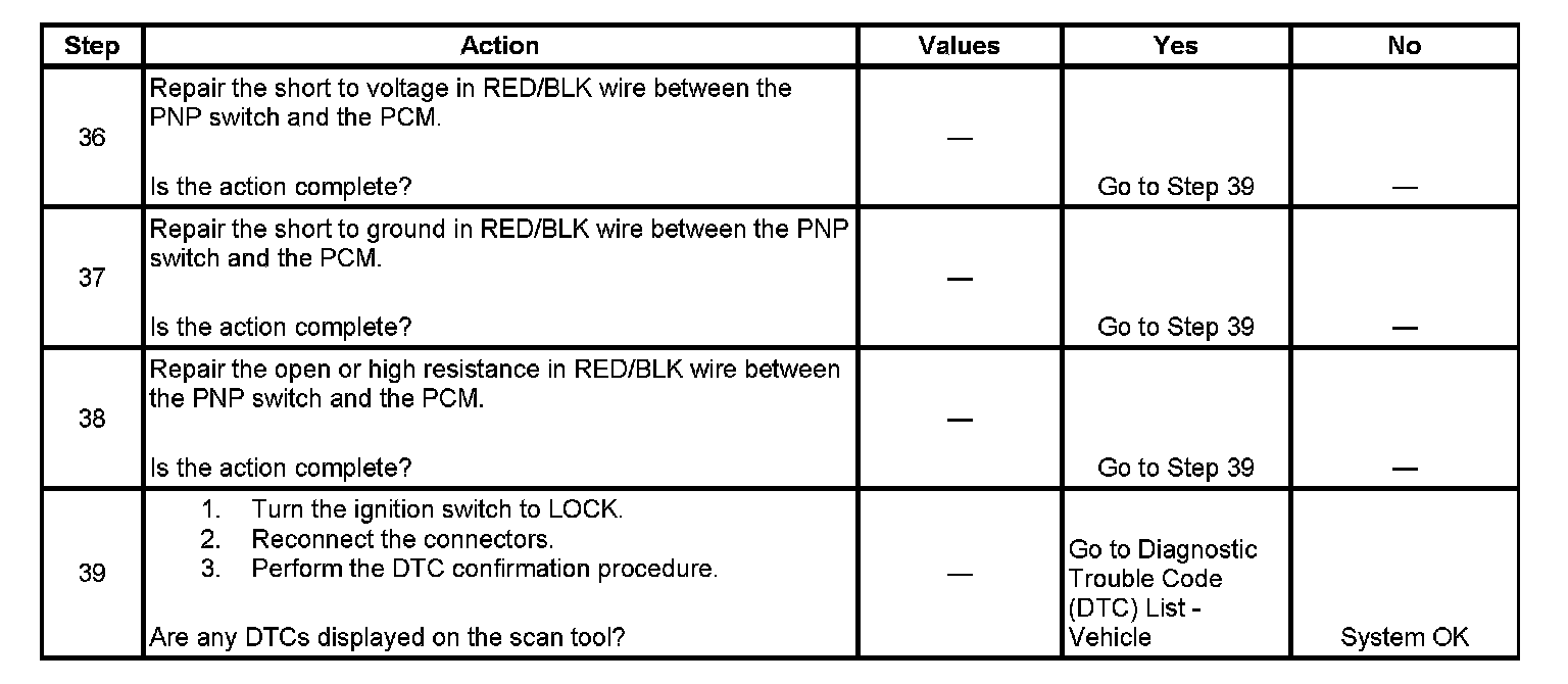 4. This step checks the P position signal circuit.