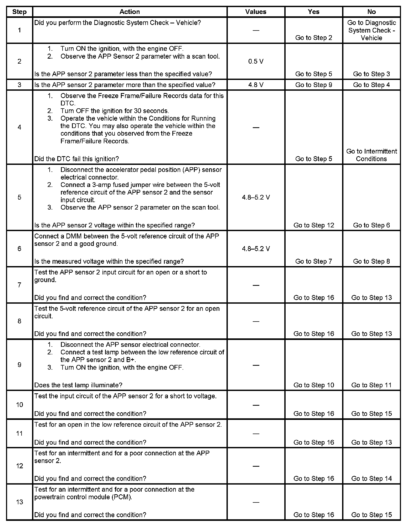 9. This step tests for an open in the APP sensor 2 low reference circuit. The control module will receive a high voltage signal if the low reference circuit is open.