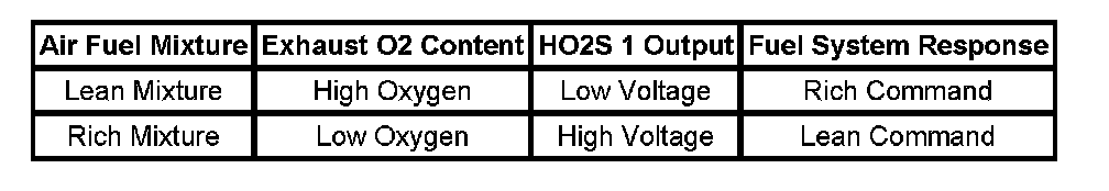 The DTC P2196 Heated Oxygen Sensor (HO2S) Signal Biased Rich Sensor 1 diagnostic monitors the signal voltage of the HO2S. The heated oxygen sensor (HO2S) produces a voltage that varies between 100-900 mV. The powertrain control module (PCM) monitors this voltage and determines by the exhaust gas oxygen content whether the air/fuel mixture is rich or lean. When the voltage input at the PCM is about 100 mV, the HO2S is indicating a lean air/fuel mixture. When the voltage input is about 900 mV, the HO2S is indicating rich air/fuel mixture. The PCM constantly monitors the HO2S signal during Closed Loop operation and compensates for the rich or the lean condition by decreasing or increasing fuel injector pulse width. A DTC P2196 may set if the HO2S 1 voltage remains excessively high for an extended period of time.