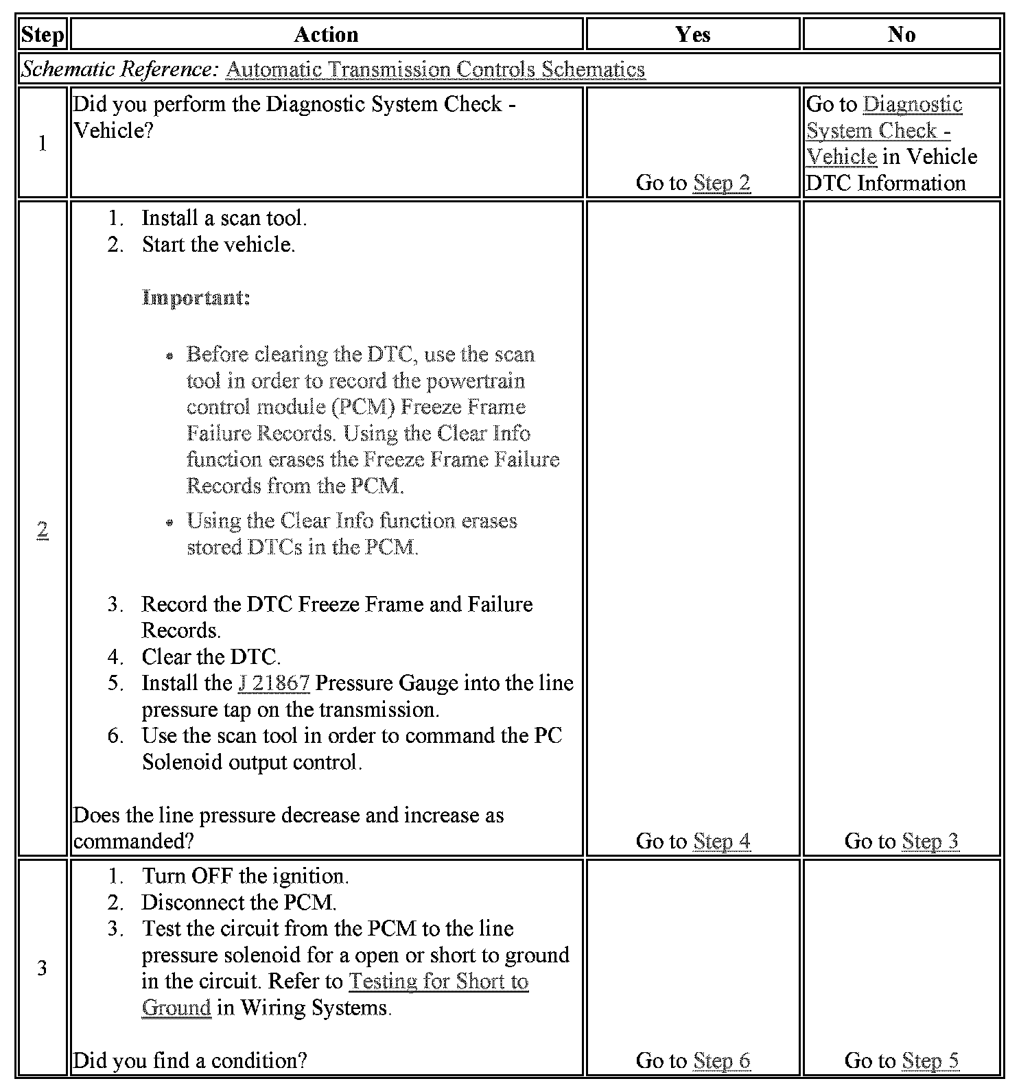 PCM detects a open or short to ground in line pressure solenoid circuit.