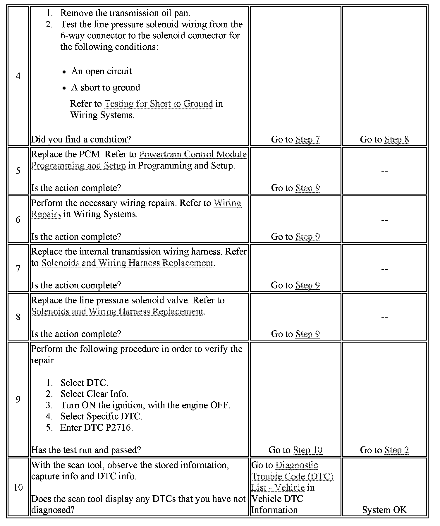 When the PCM detects a continuous open or short to ground in the line pressure solenoid circuit, then DTC P2716 sets.