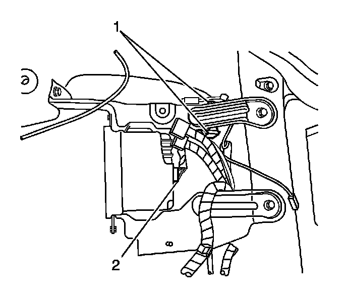 4. Clip the antenna and module harness (1), to the module bracket.