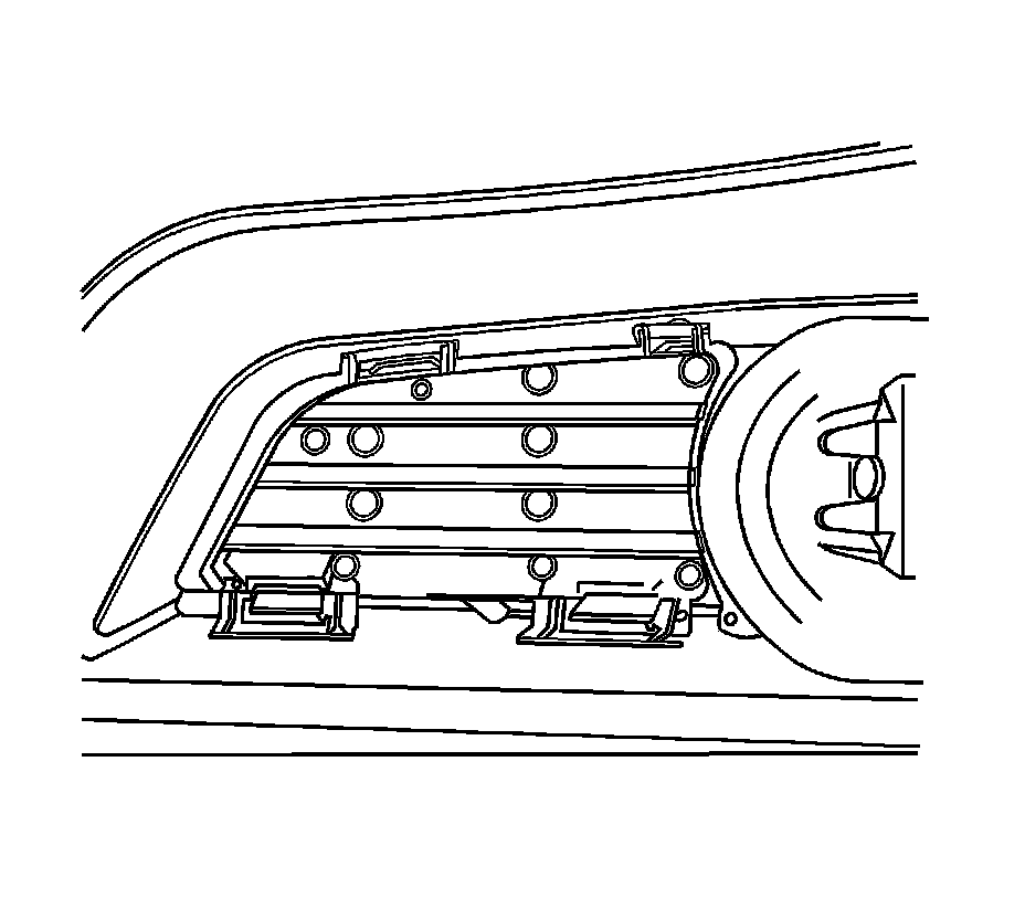 Using a small flat-bladed tool, reach into the opening on the front lower fascia and depress the retaining tabs that lock the lower fascia insert.