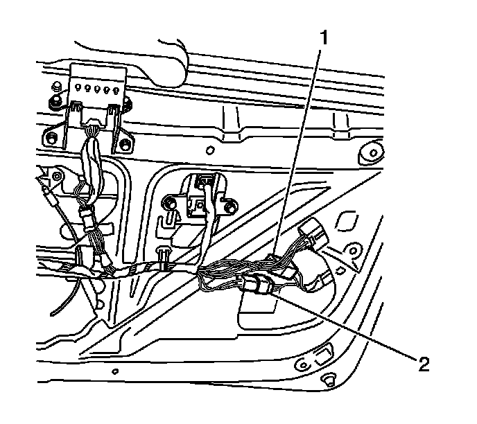 12. Disconnect upper harness boot (2) from lift gate (1)