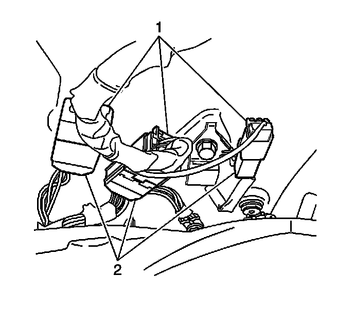 9. Disconnect the lower and upper harness connectors (1), (2).