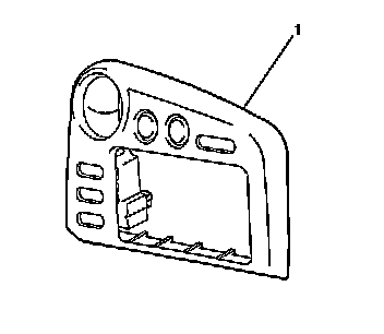 1. Using a taped flat bladed tool, gently pry and release the retaining clips which secure the IP accessory center trim plate (1) to the instrument panel assembly.