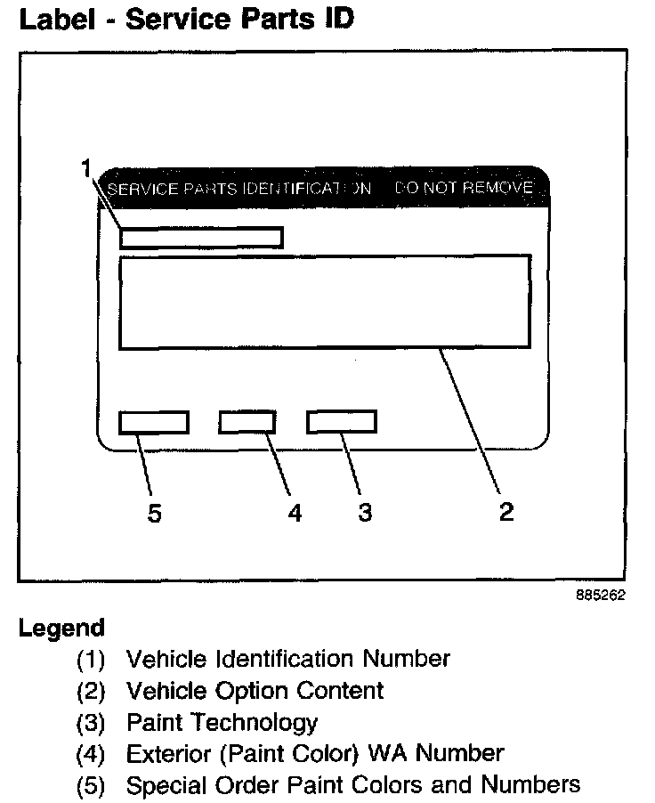 The service parts identification label is placed on the vehicle in order to help service and parts personnel identify the vehicle's original parts and the vehicle's original options. The label is located on the spare tire cover.