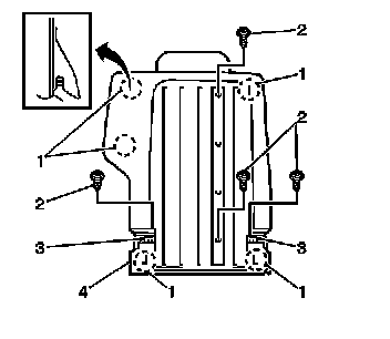 3. Remove the 4 screws (2) from the rear seat back trim panel (4).