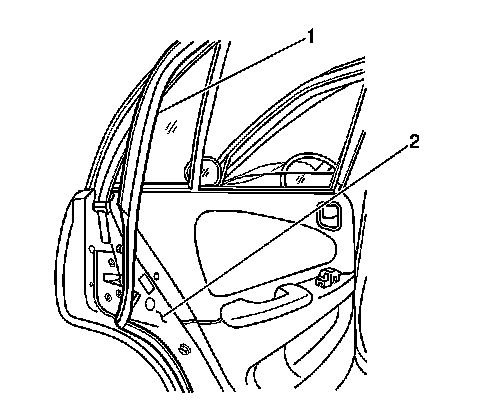 1. Install the rear door weatherstrip (1) to the door (2). Ensure that the plastic retainers are completely engaged.