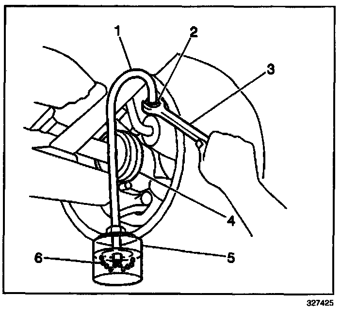 15. Repeat this procedure until air (6) is purged from the wheel hydraulic circuit.