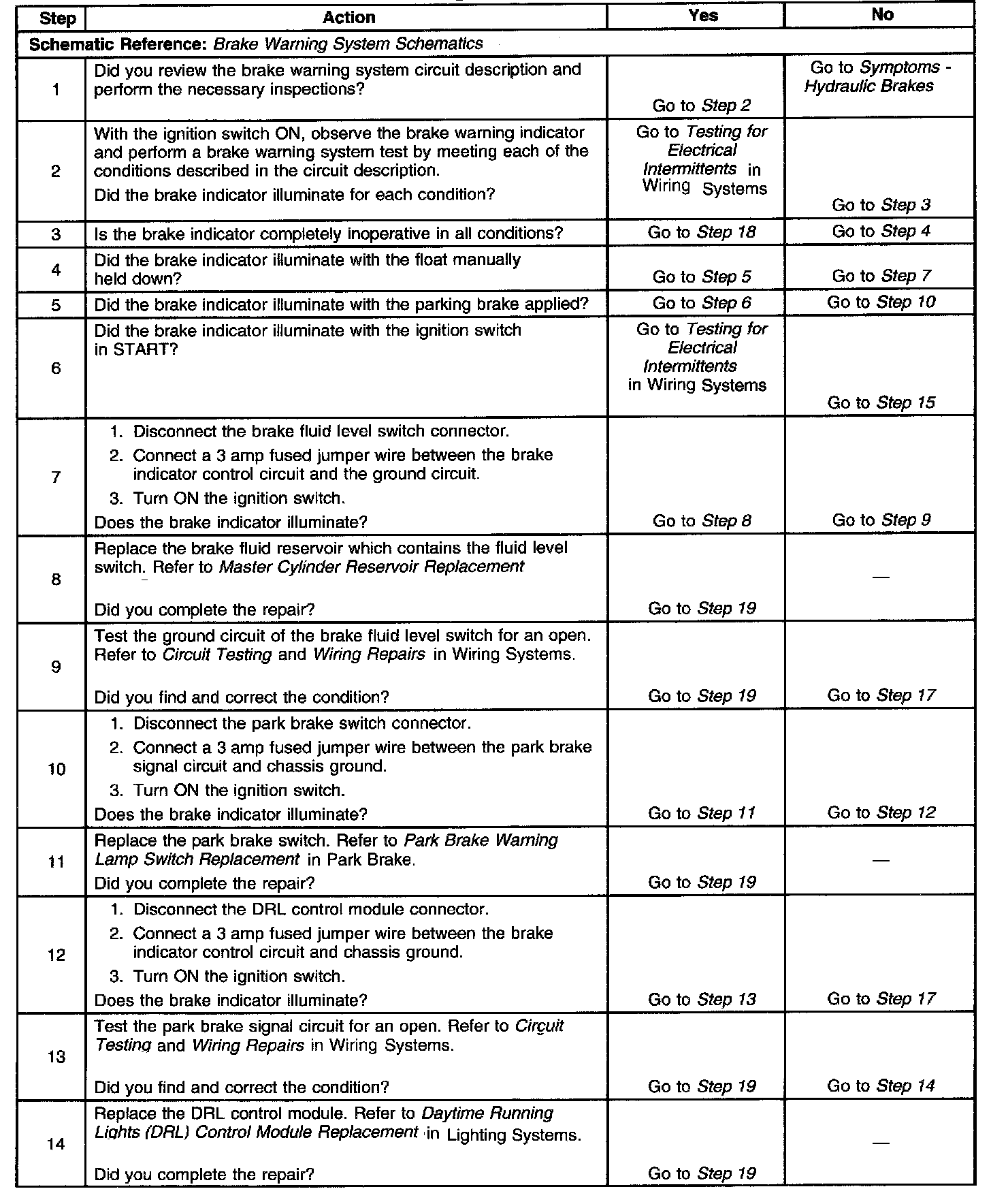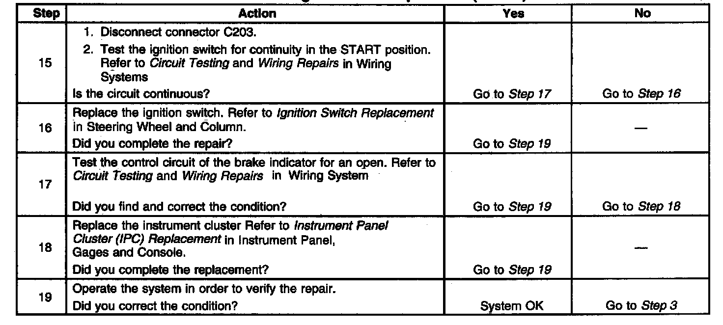 Brake Warning Indicator Inoperative (cont.):
