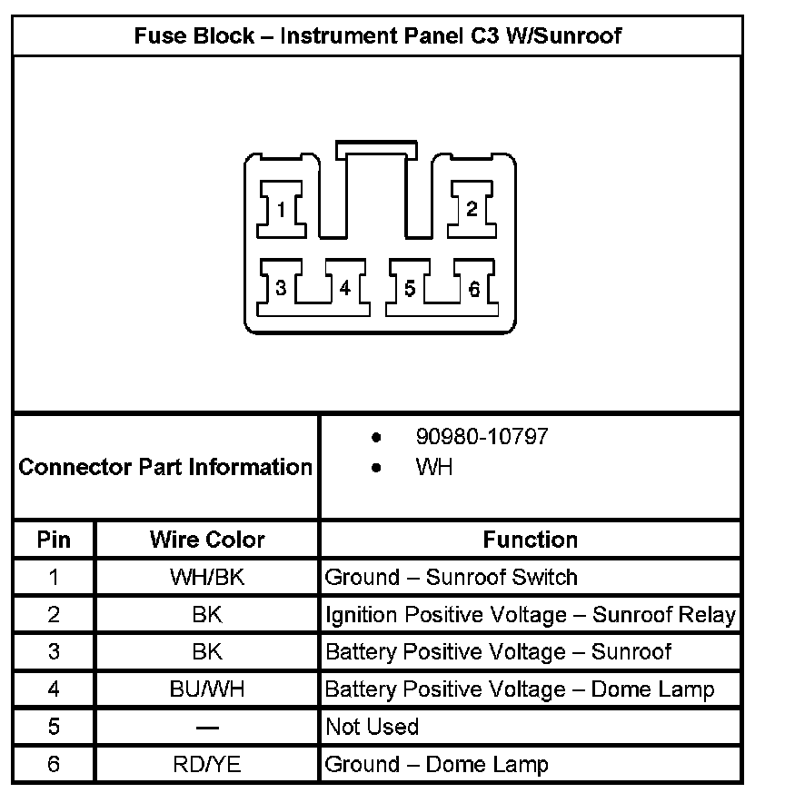 Fuse Block - Instrument Panel C3 With Sunroof: