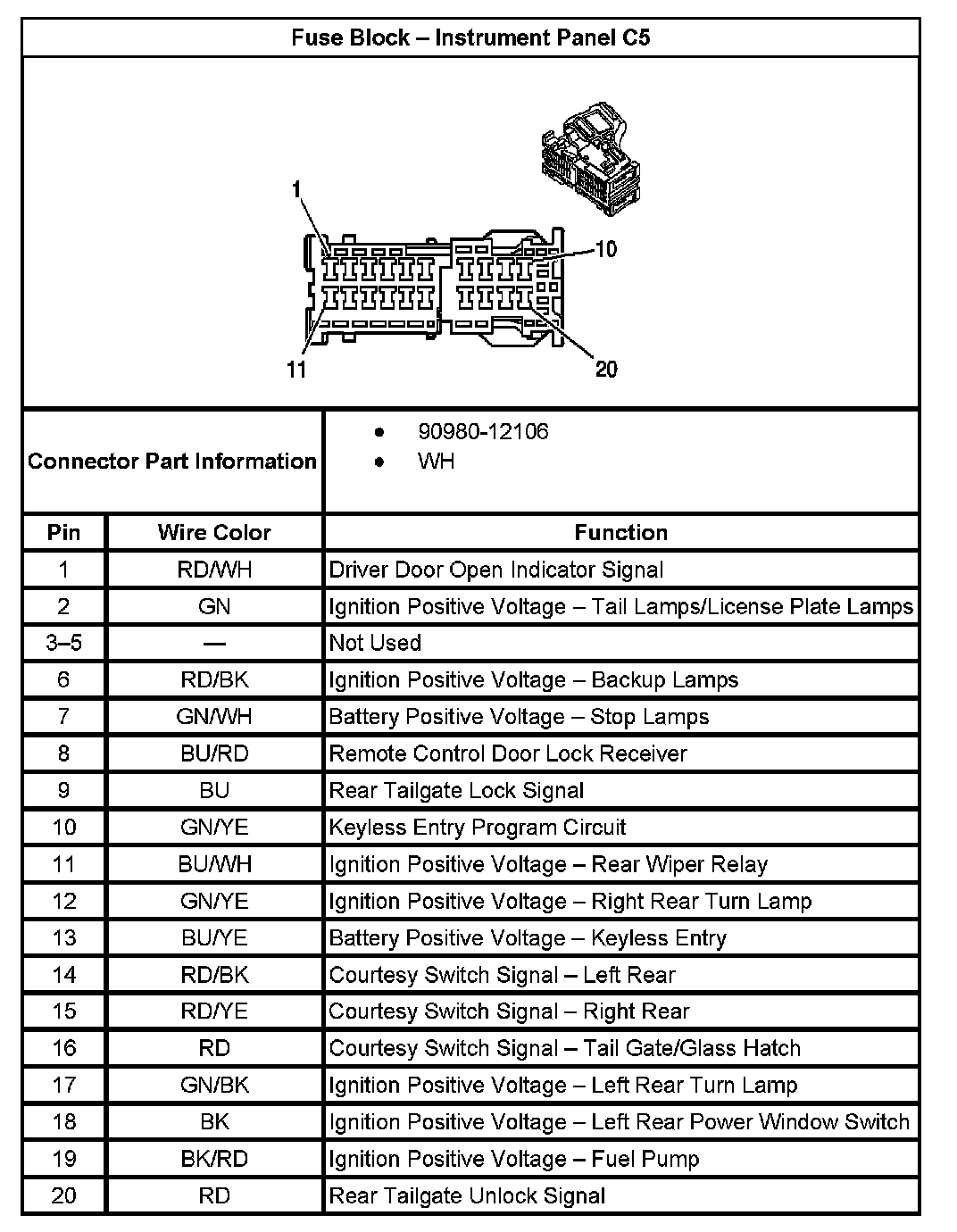 Fuse Block - Instrument Panel C5: