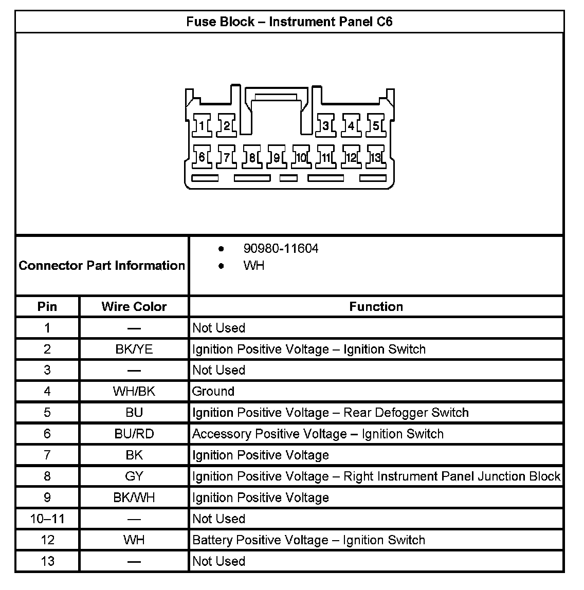 Fuse Block - Instrument Panel C6: