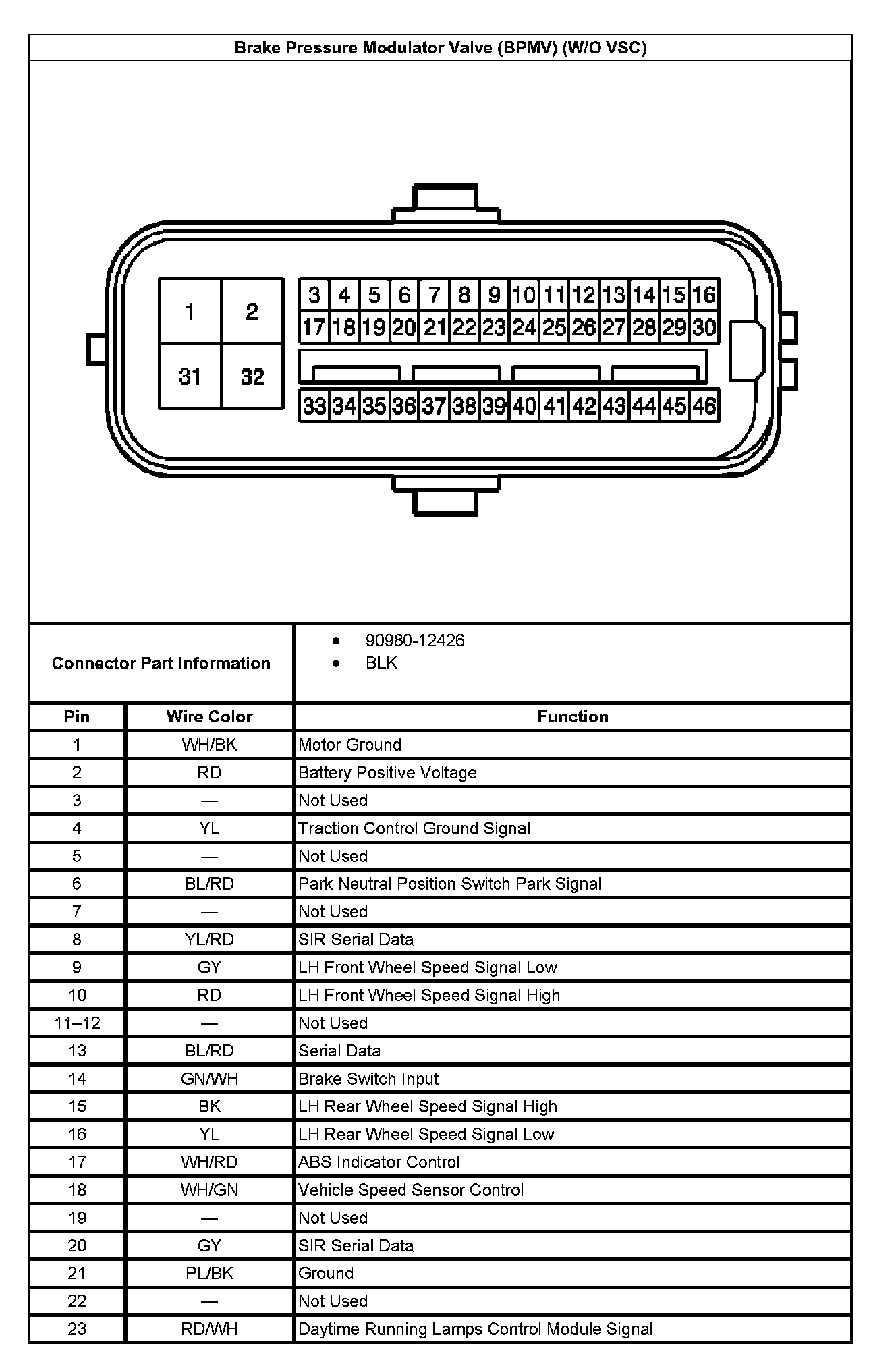 Brake Pressure Modulator Valve (w/o VSC):