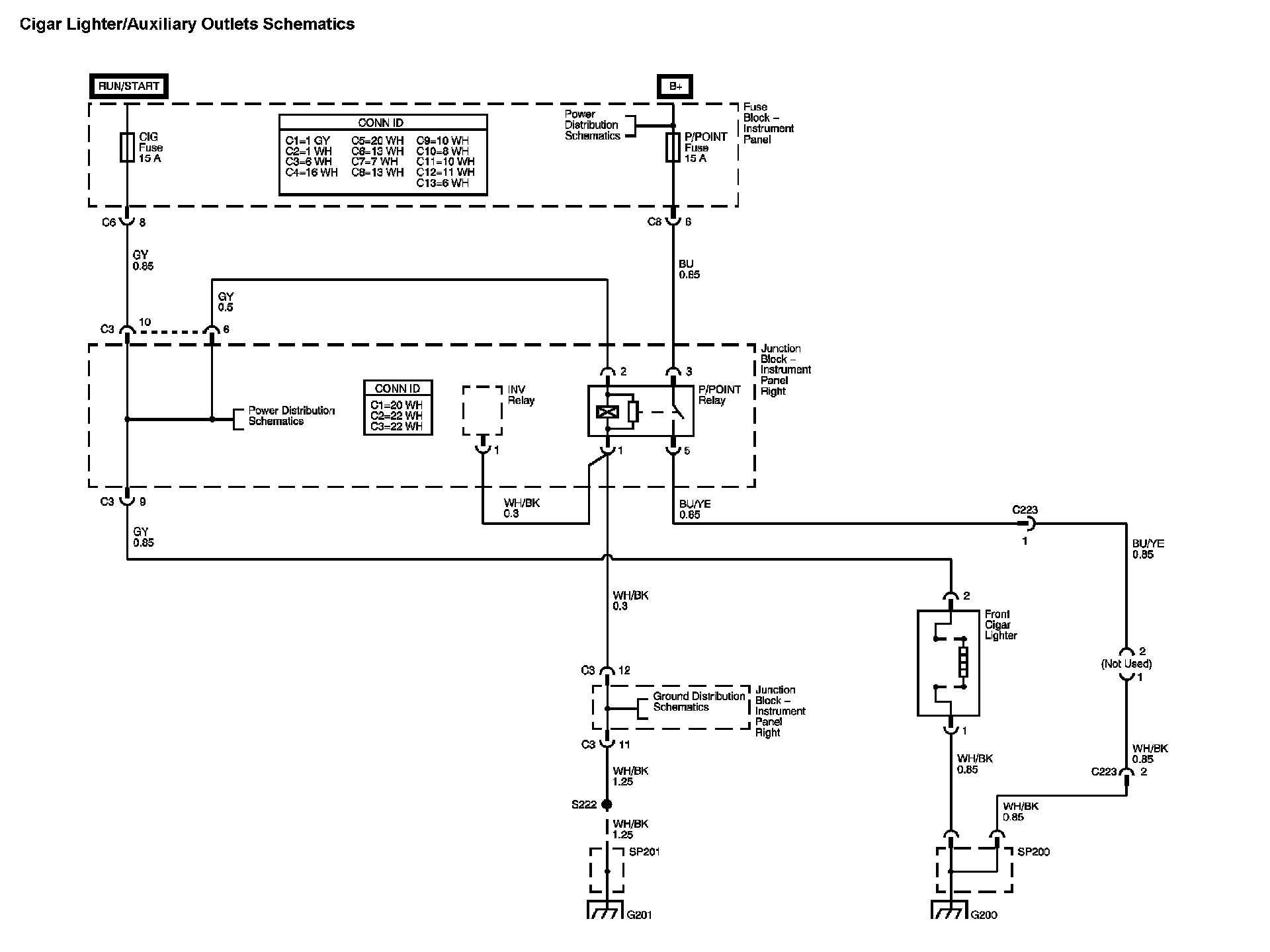 Location: The locations for the Connectors, Grounds, Splices, and Grommets shown within these diagrams can be found via their numbers at Vehicle Locations. Locations
