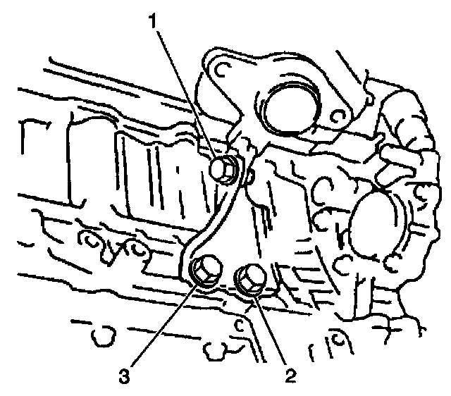 32. On AWD, install the one bolt (1) from the manifold to the support bracket.
