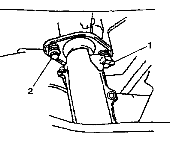50. Remove the two power steering pump through bolts and nuts (1).