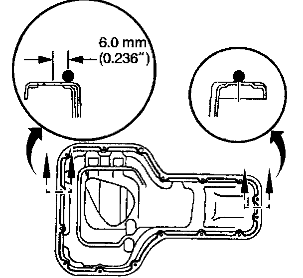 5. Apply a continuous bead of silicon sealant GM P/N 12346240 (Canadian P/N 10953493) or an equivalent, to the engine oil pan mating surface.