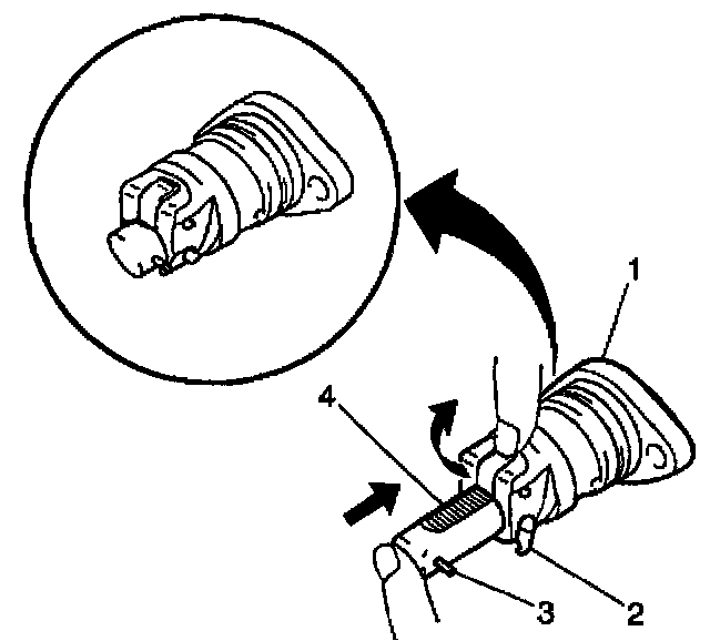 2. Fully depress the plunger (4).