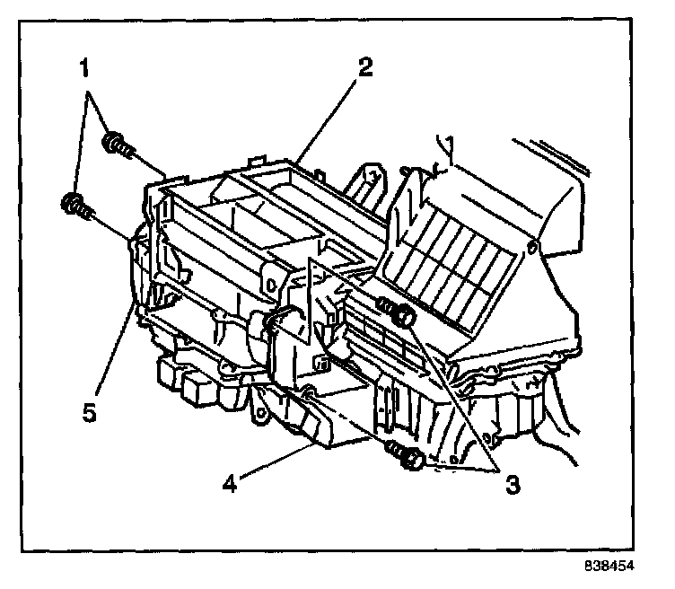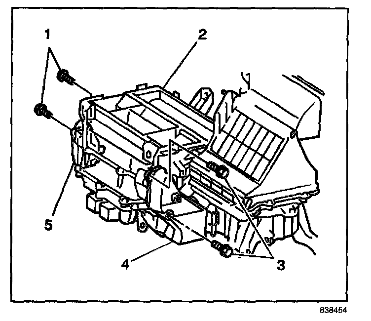 2. Remove the outlet duct (5) from the HVAC module (2).