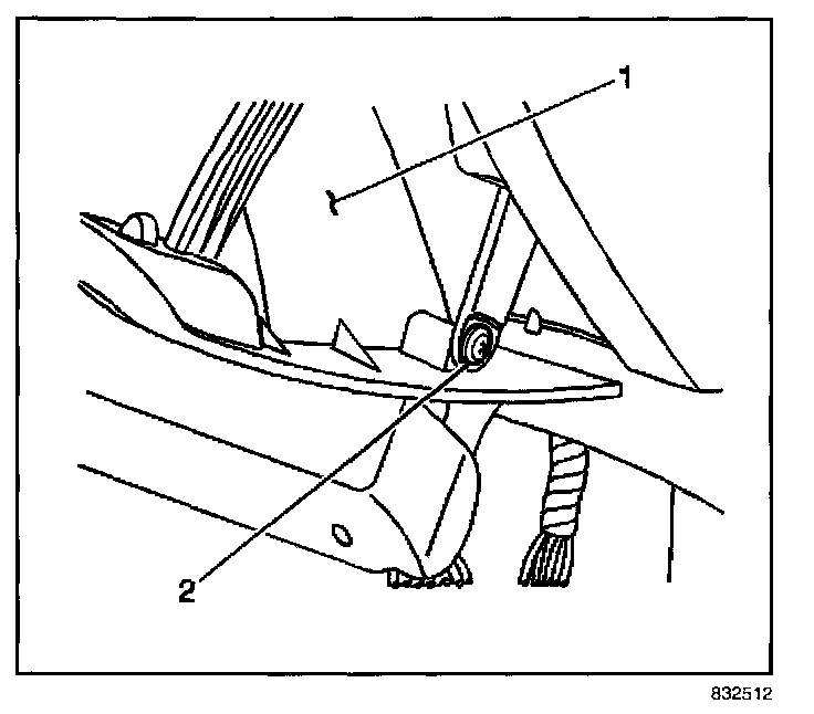 2. Remove the screw (2) from the right side of the compartment door (1).