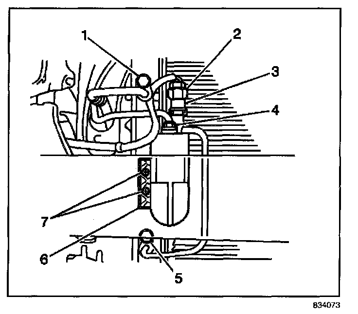 2. Install new O-rings lubricated with mineral base 525 viscosity refrigerant oil.