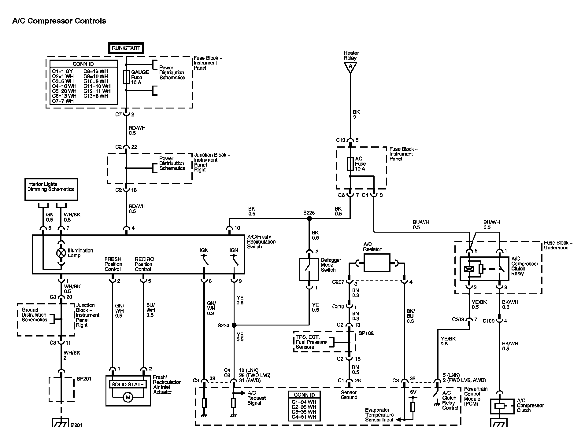 The locations for the Connectors, Grounds, Splices, and Grommets shown within these diagrams can be found via their numbers at Vehicle Locations.
