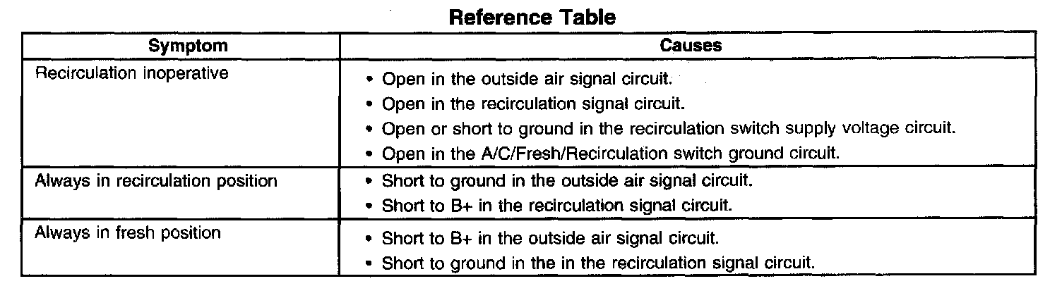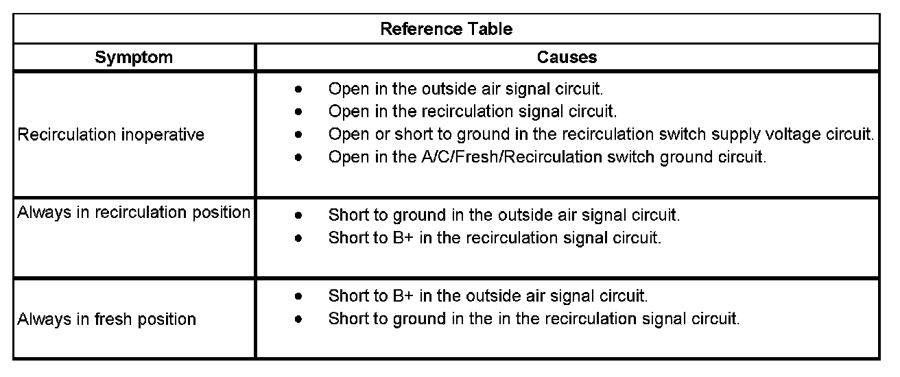 Air Recirculation Malfunction (Always In Recirculation Position)