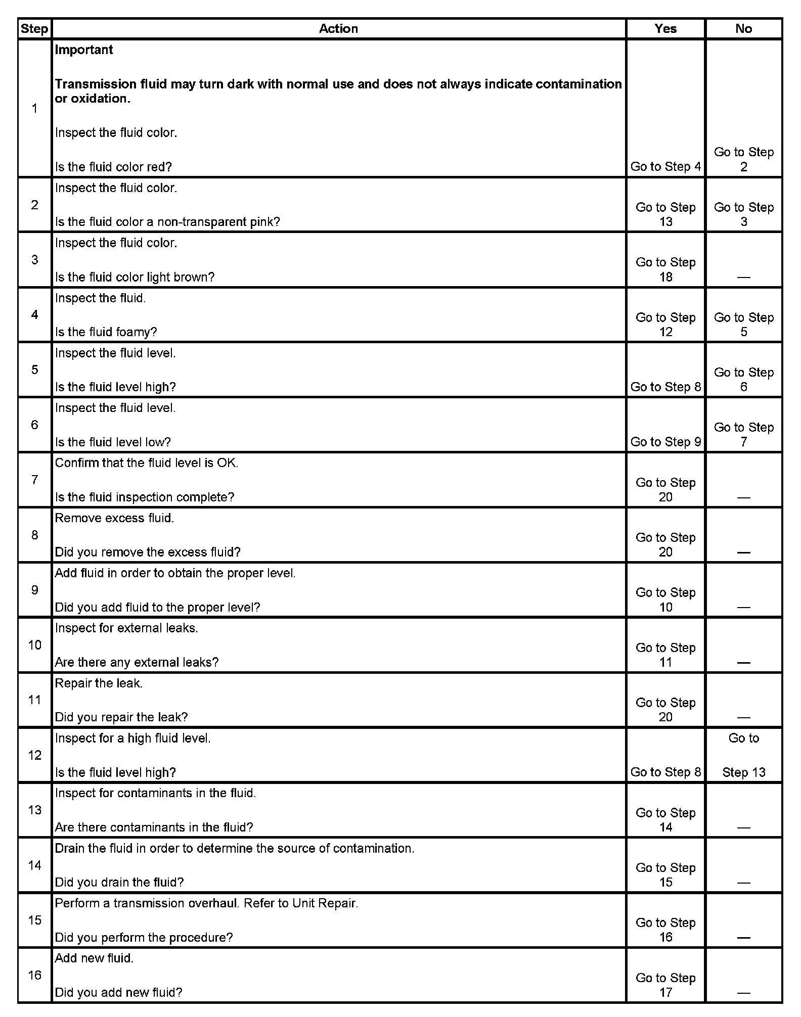 Transmission Fluid Checking Procedure
