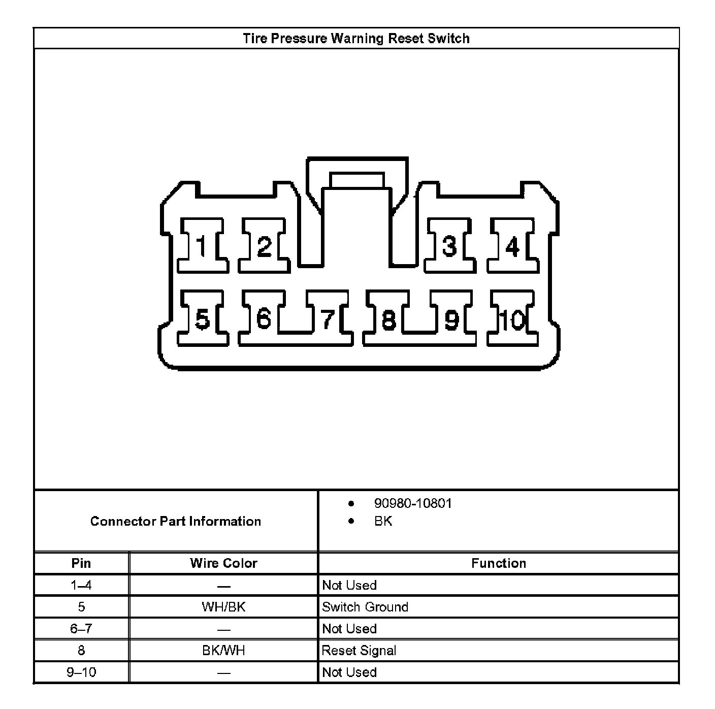Tire Pressure Warning Reset Switch Connector End View: