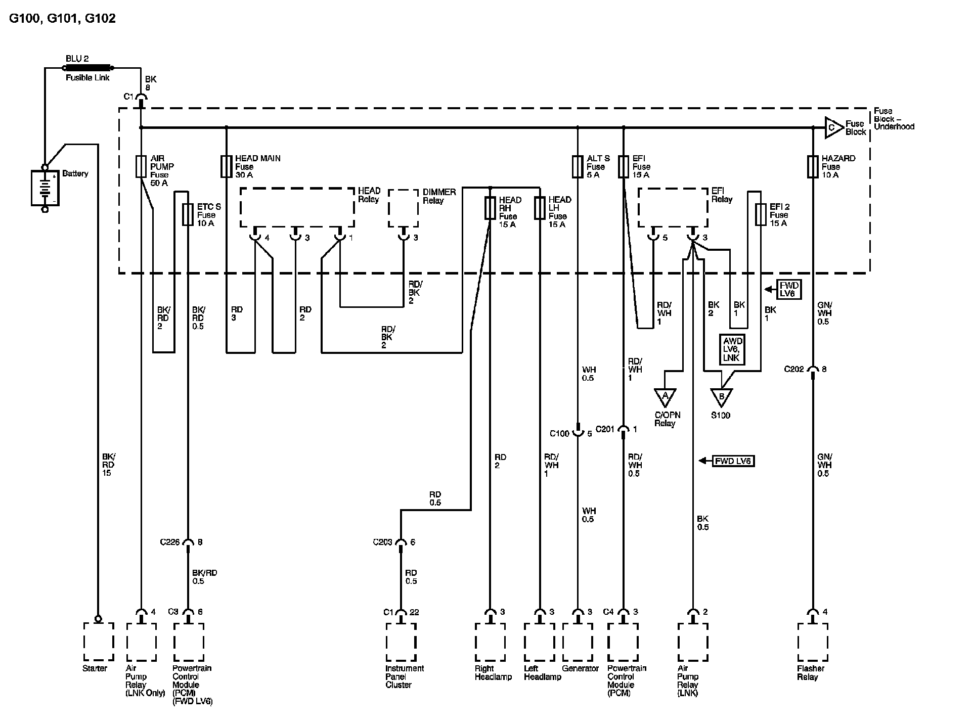 The locations for the Connectors, Grounds, Splices, and Grommets shown within these diagrams can be found via their numbers at Vehicle Locations.