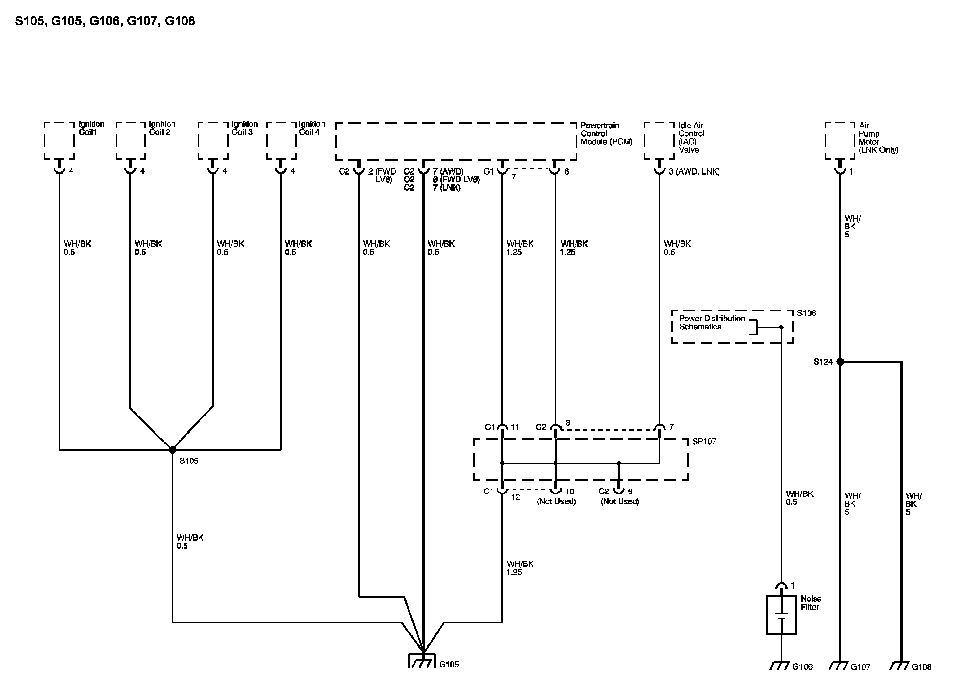 The locations for the Connectors, Grounds, Splices, and Grommets shown within these diagrams can be found via their numbers at Vehicle Locations.