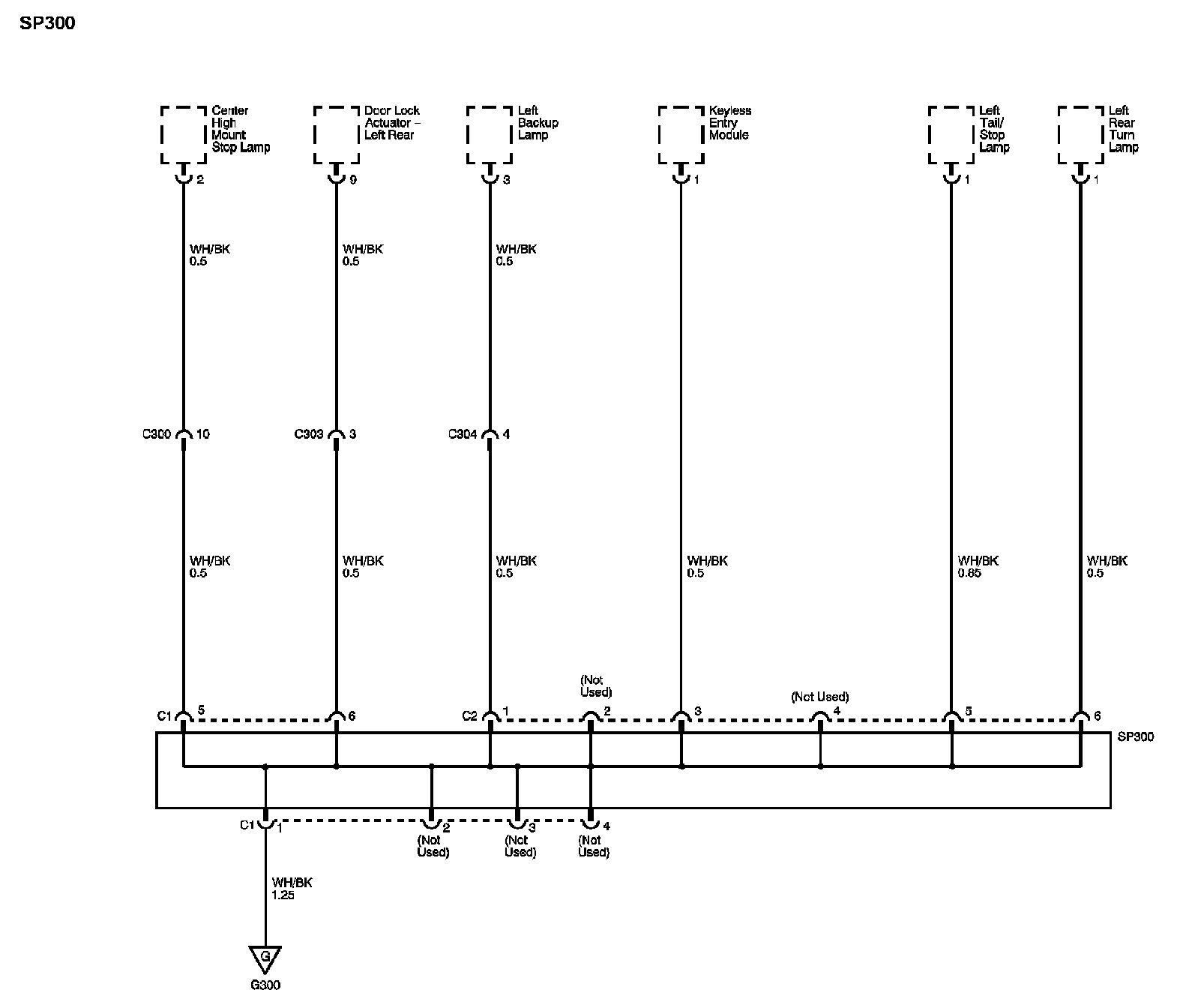 The locations for the Connectors, Grounds, Splices, and Grommets shown within these diagrams can be found via their numbers at Vehicle Locations.