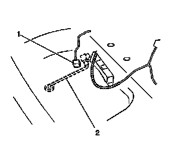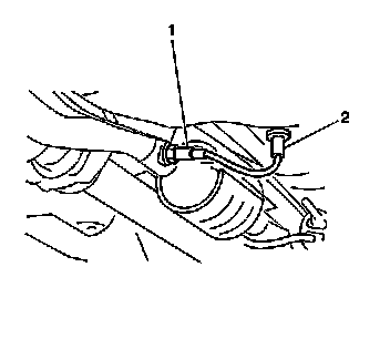 6. Remove the HO2S 2 wiring pigtail and body plug (2) from the floor pan.
