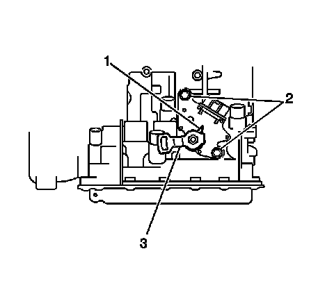 2. Install a new lock plate (1) and the manual shaft nut (3) onto the PNP switch.